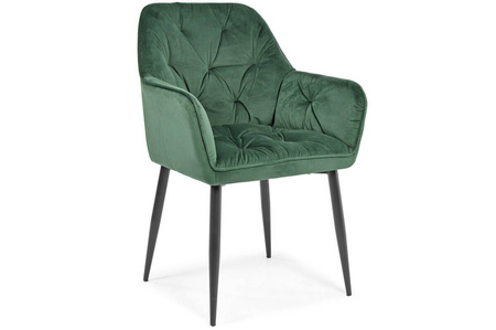 - Функционален ватиран стол за трапезарията и всекидневната. Велурен стол в стил "блясък" в бутилково зелено. Кресло стол с ватиран корпус и високи подлакътници. Столът почива на метални черни крака, които придават стабилност.