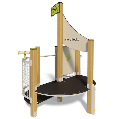 Комплектът за игра,,Мостът на капитана" LK306 е уникален комплект за игра, вдъхновен от темата за морските приключения. Благодарение на конструкцията, наподобяваща капитански мостик, децата могат да влязат в ролята на капитан на кораб и да развият въображението си, докато играят заедно. Комплексът съчетава елементи за катерене, платформи, мостове и пързалки, като предлага широк спектър от физически дейности.