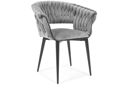 Exkluzivní židle IRIS LUX zaujme svým elegantním designem a luxusním provedením. Ažurový, tkaný opěrák v šedém sametu typu Velvet v kombinaci se zlatými nohami vytváří jedinečný vizuální efekt, který upoutá pozornost a podtrhne charakter interiéru. Ideální do obývacího pokoje, jídelny, pracovny nebo ložnice.