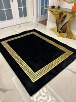 Luksus håndlavet tæppe - sort plys tæppe med guldmønster blødt, elegant, unikt i VERSACE STYLE