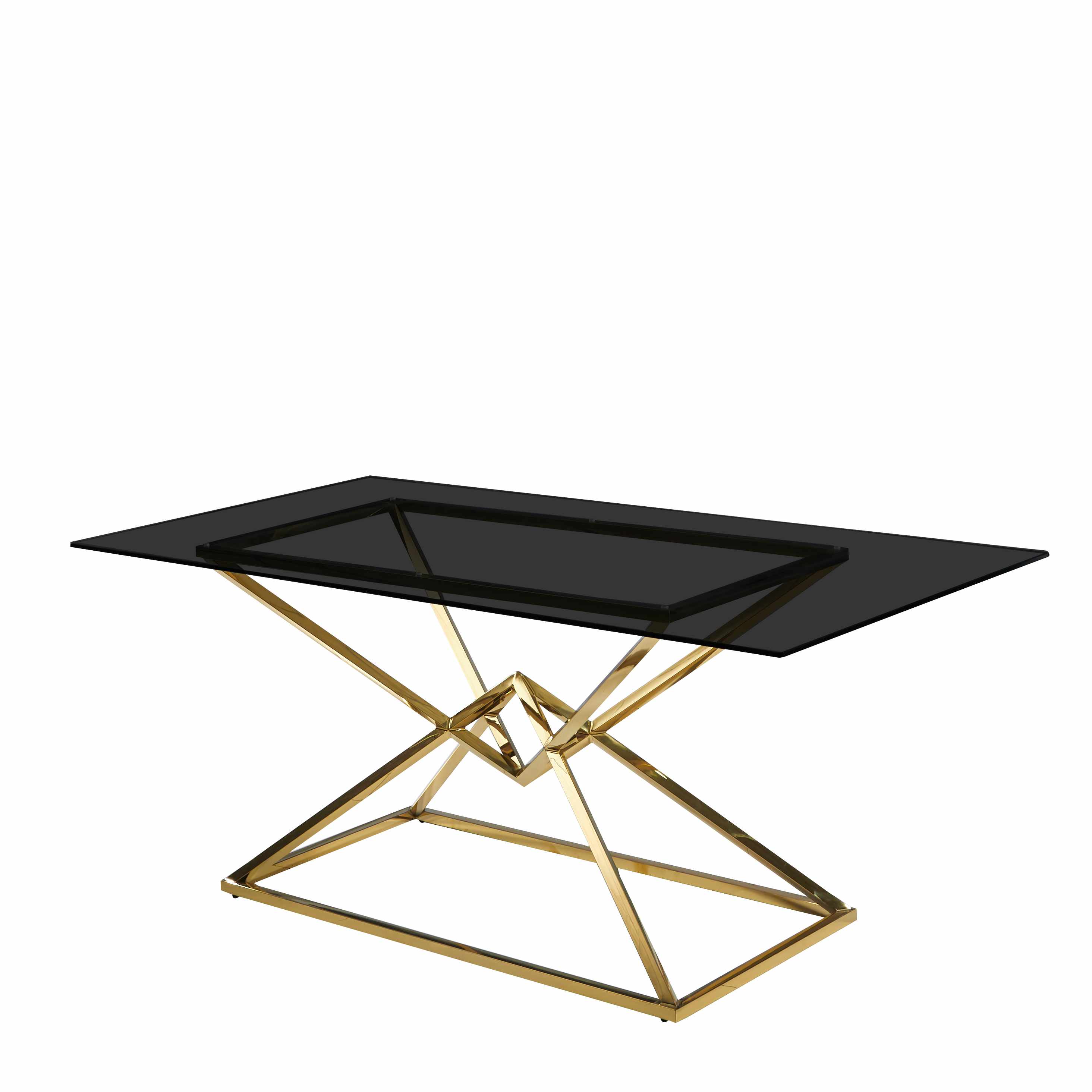 Dette unikke bord er lavet af poleret rustfrit stål i en luksuriøs guldfarve, som tilfører glans til ethvert rum. Den elegante bordplade i sort hærdet glas fremhæver møblets moderne karakter og kombinerer holdbarhed med æstetik. Det er det ideelle valg til spisestuen, stuen eller det eksklusive kontor, hvor stil og solidt håndværk betyder noget. Produktet kræver selvmontering, hvilket gør det hurtigt og nemt at klargøre bordet til brug.