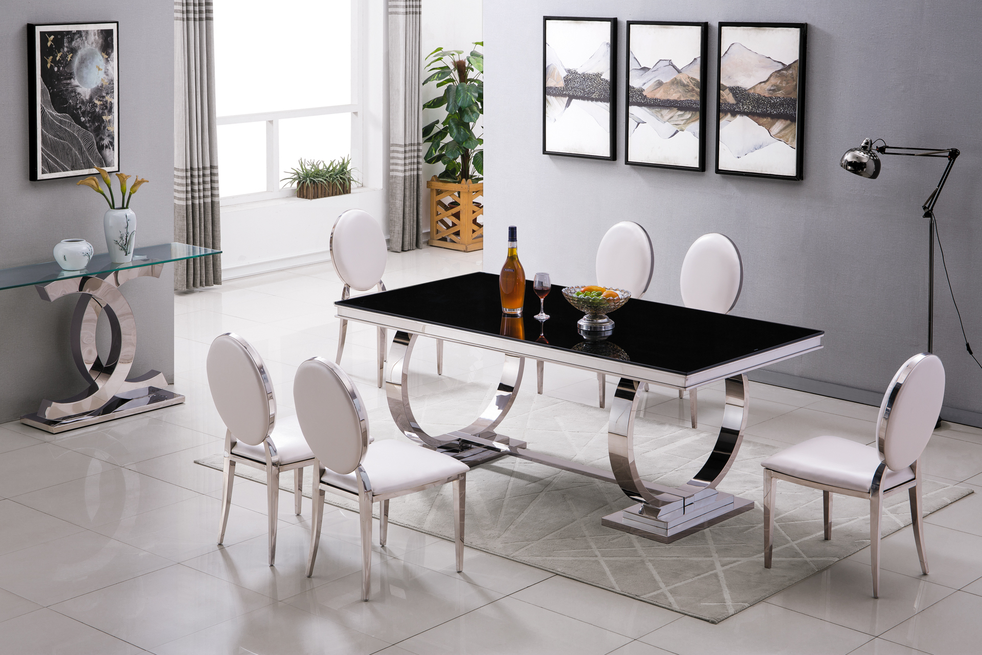 Spisebord i kromet stål og hærdet glas i lys limegrøn farve 150x90x75 cm