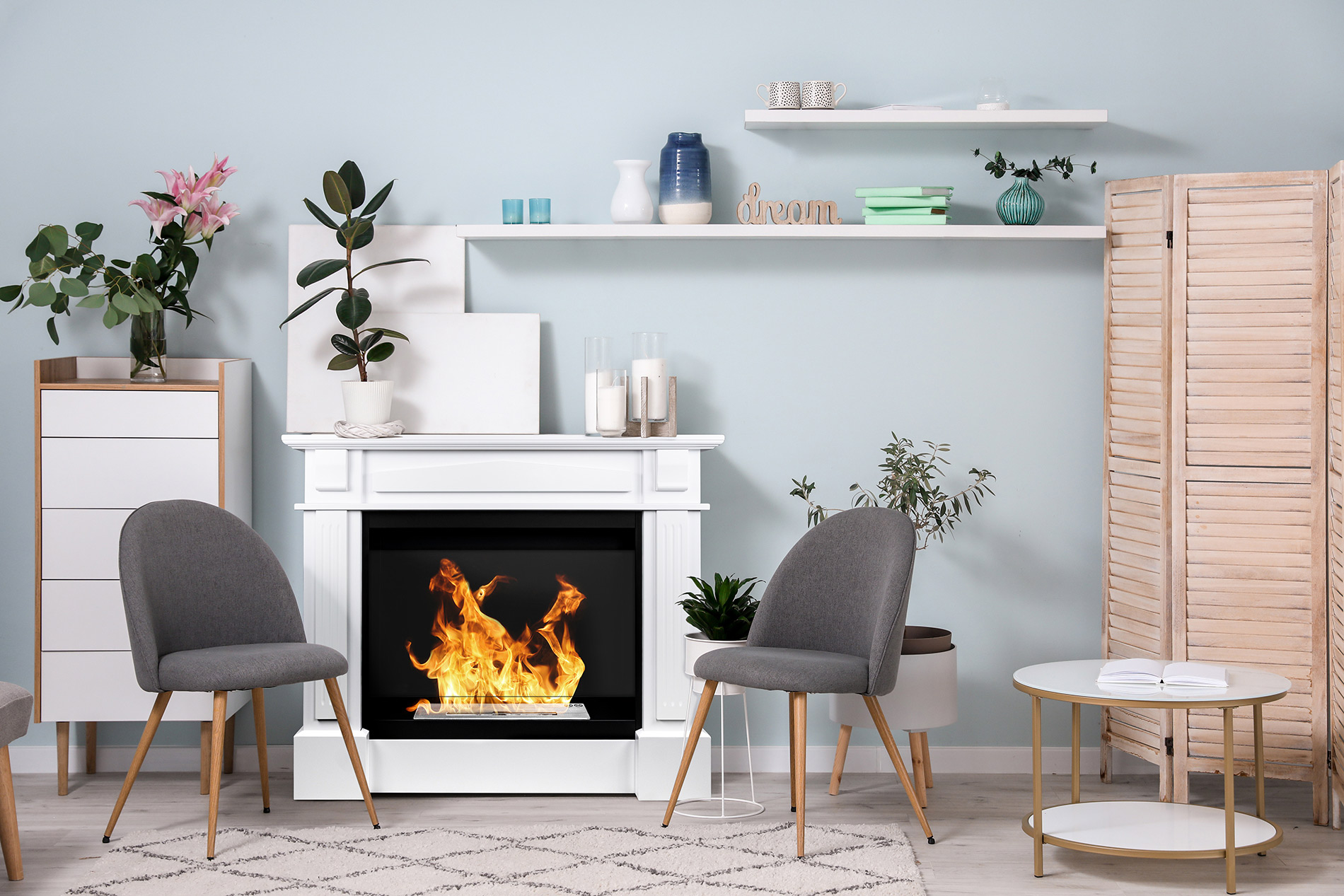 En biopejs drives af flydende biobrændsel, så den kræver ikke yderligere tilslutninger til en skorsten eller ventilation!