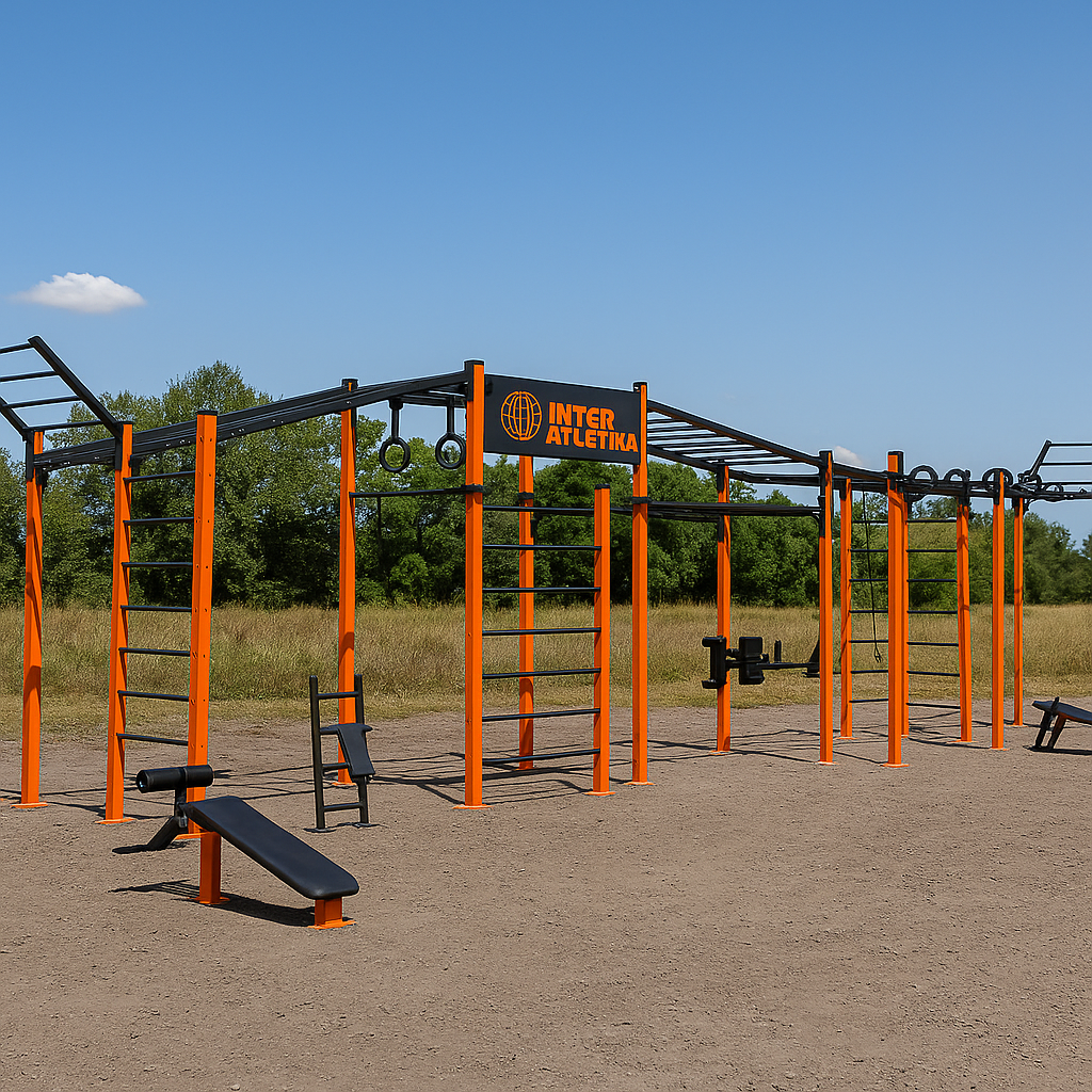 - Er et moderne outdoor sportsanlæg, designet til alsidig funktionel træning og udvikling af alle muskelgrupper. Konstruktionen består af forbundne træningselementer monteret på stolper.