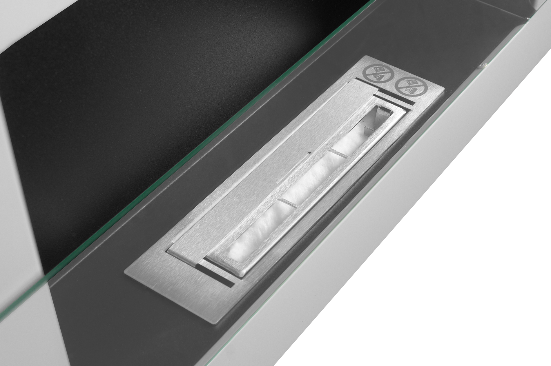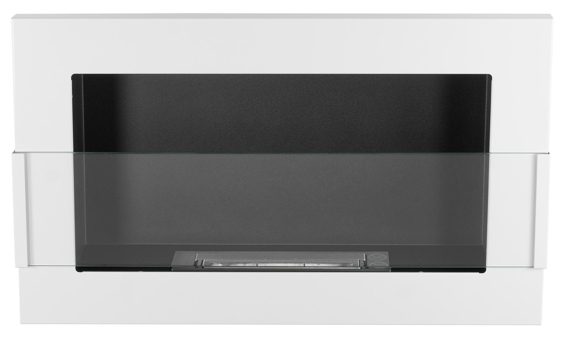 Επιτοίχιο τζάκι βιοαιθανόλης με γυαλί 650x400 – γυαλιστερό λευκό, τζάκι βιοαιθανόλης εσωτερικού χώρου