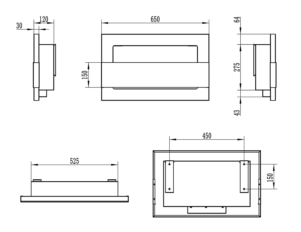 Επιτοίχιο βιο τζάκι με γυαλί 650x400 γυαλιστερό λευκό