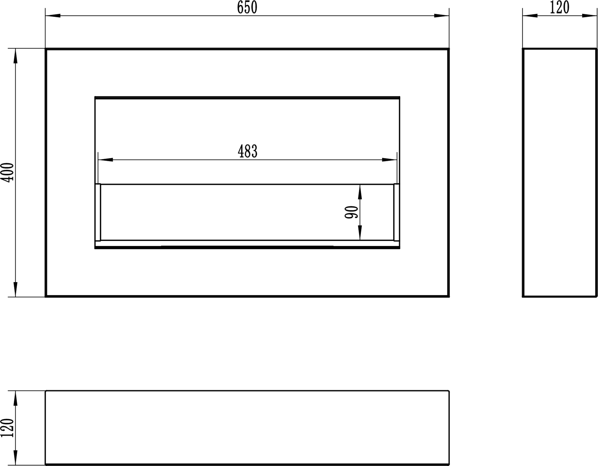 Επιτοίχιο βιο-τζάκι με γυαλί 650x400 Κουτί, ανάγλυφο μαύρο ματ