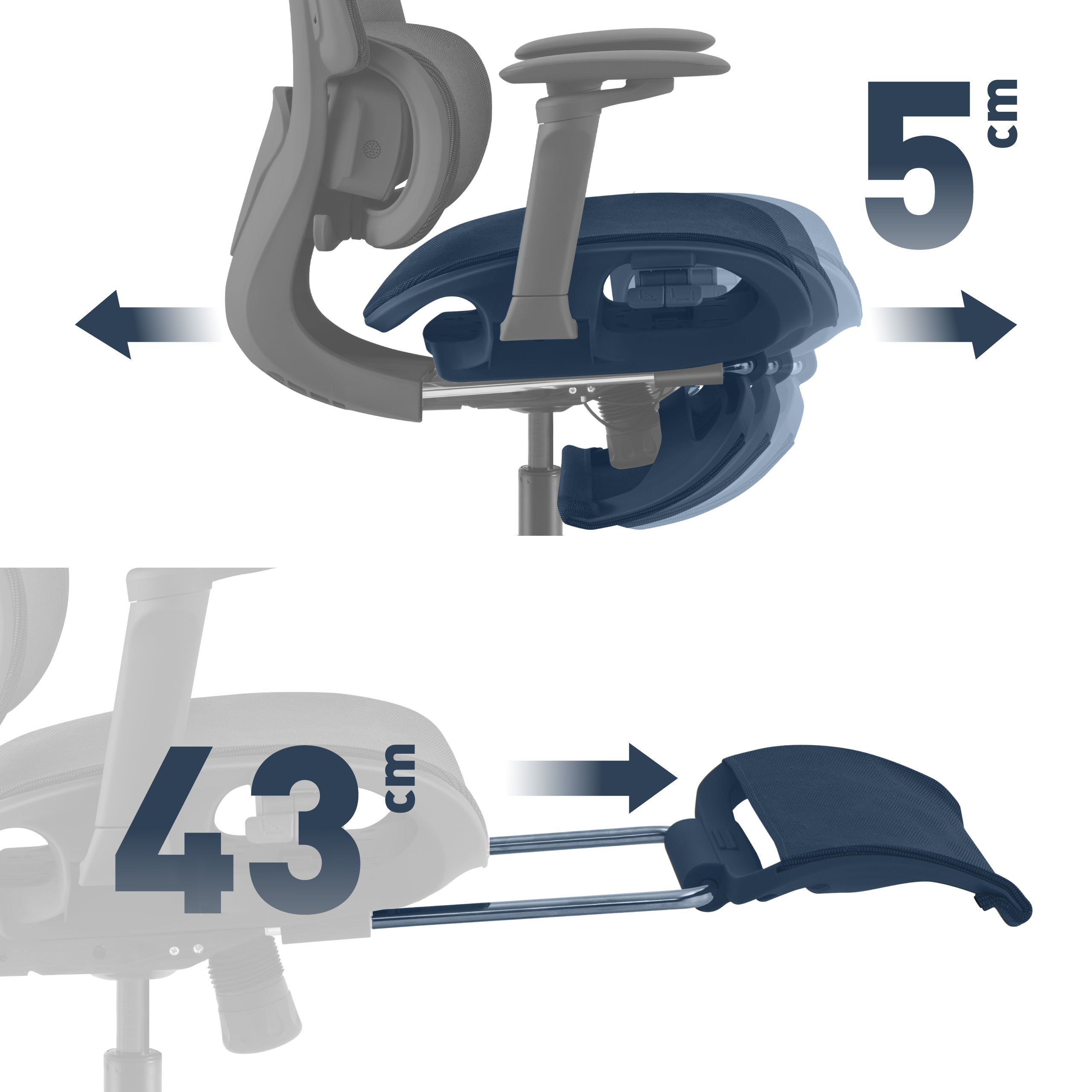 The seat depth can be adjusted up to 5 cm allows you to perfectly adjust the chair to your figure, ensuring maximum comfort both during work and rest.