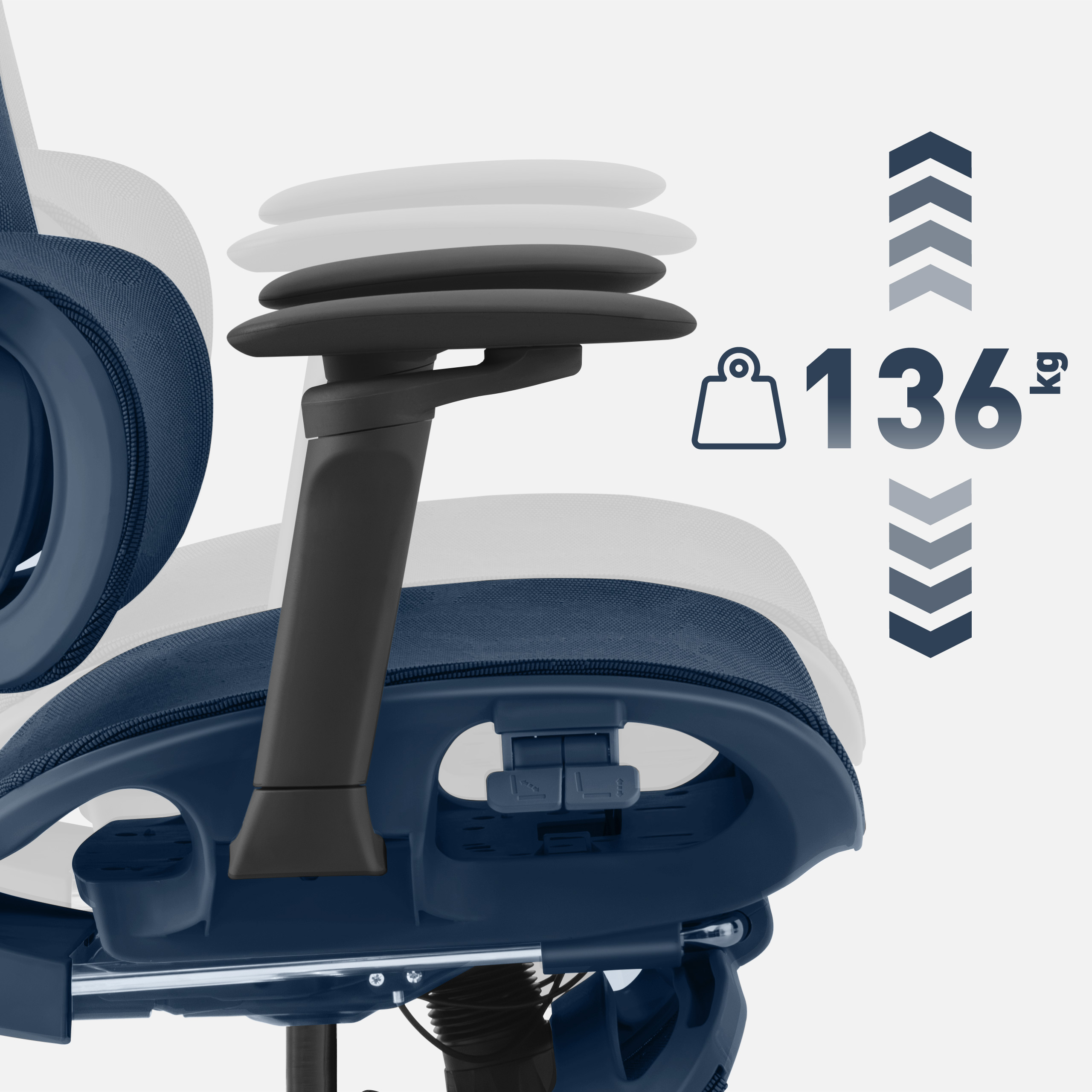 - Premium ergonomics– adjustable seat, 6D armrests, headrest, footrest, and lumbar support