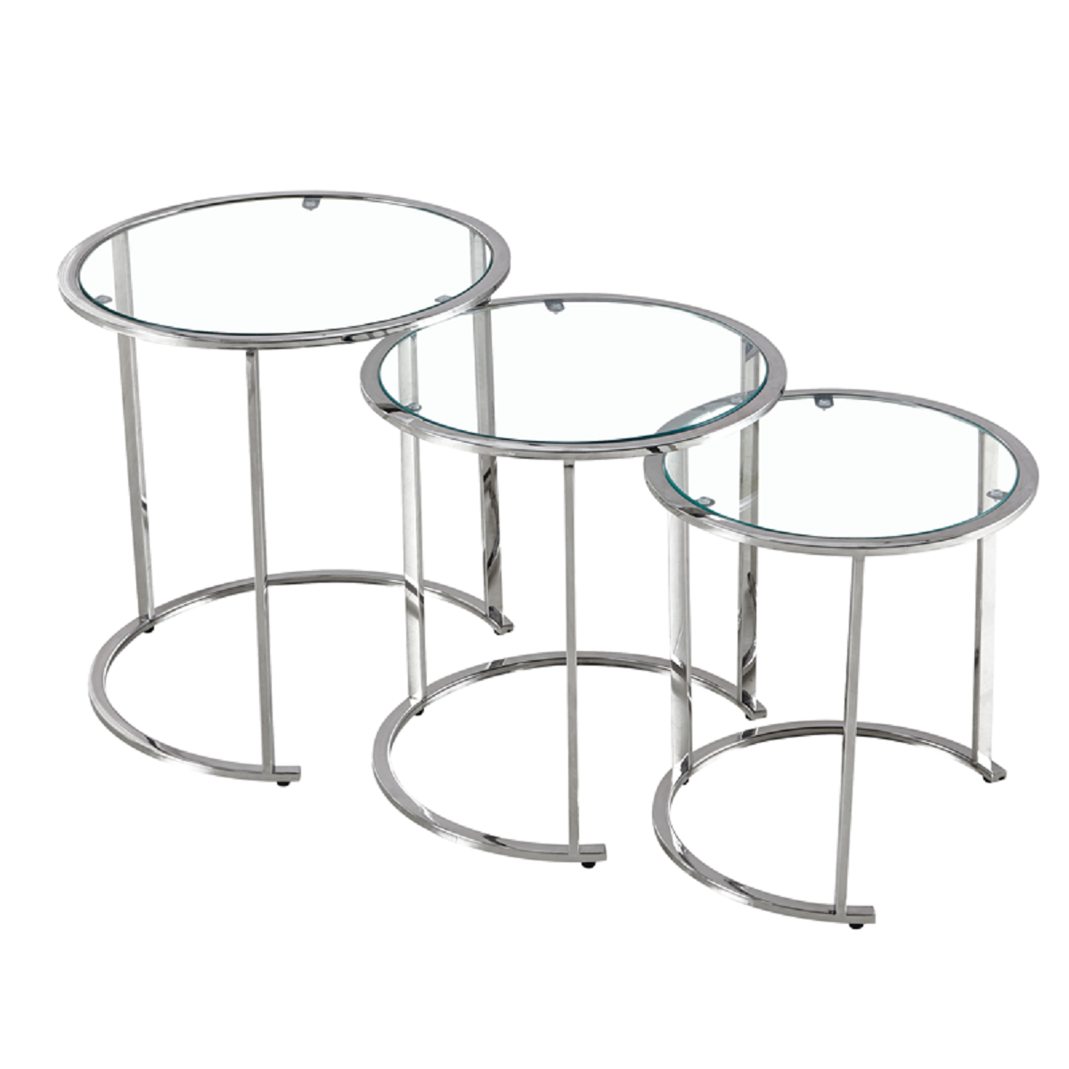 Komplet 3 stolików ze stali nierdzewnej w kolorze Srebrnym – luksus i lekkość w Twoim wnętrzu