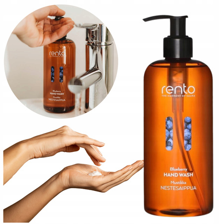 Rento est synonyme de qualité et d'élégance. Les produits de la marque se caractérisent par un design soigné et un soin apporté à l'utilisateur. Le savon à la myrtille allie le pouvoir nourrissant de l'aloe vera et l'extrait de myrtille adoucissant, transformant chaque lavage des mains en un rituel agréable. Grâce au parfum subtil de myrtille, vos mains restent fraîches et enveloppées d'un arôme délicat.