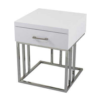 | Produit | Table de chevet avec plateau en MDF laqué blanc et structure en acier inoxydable |
