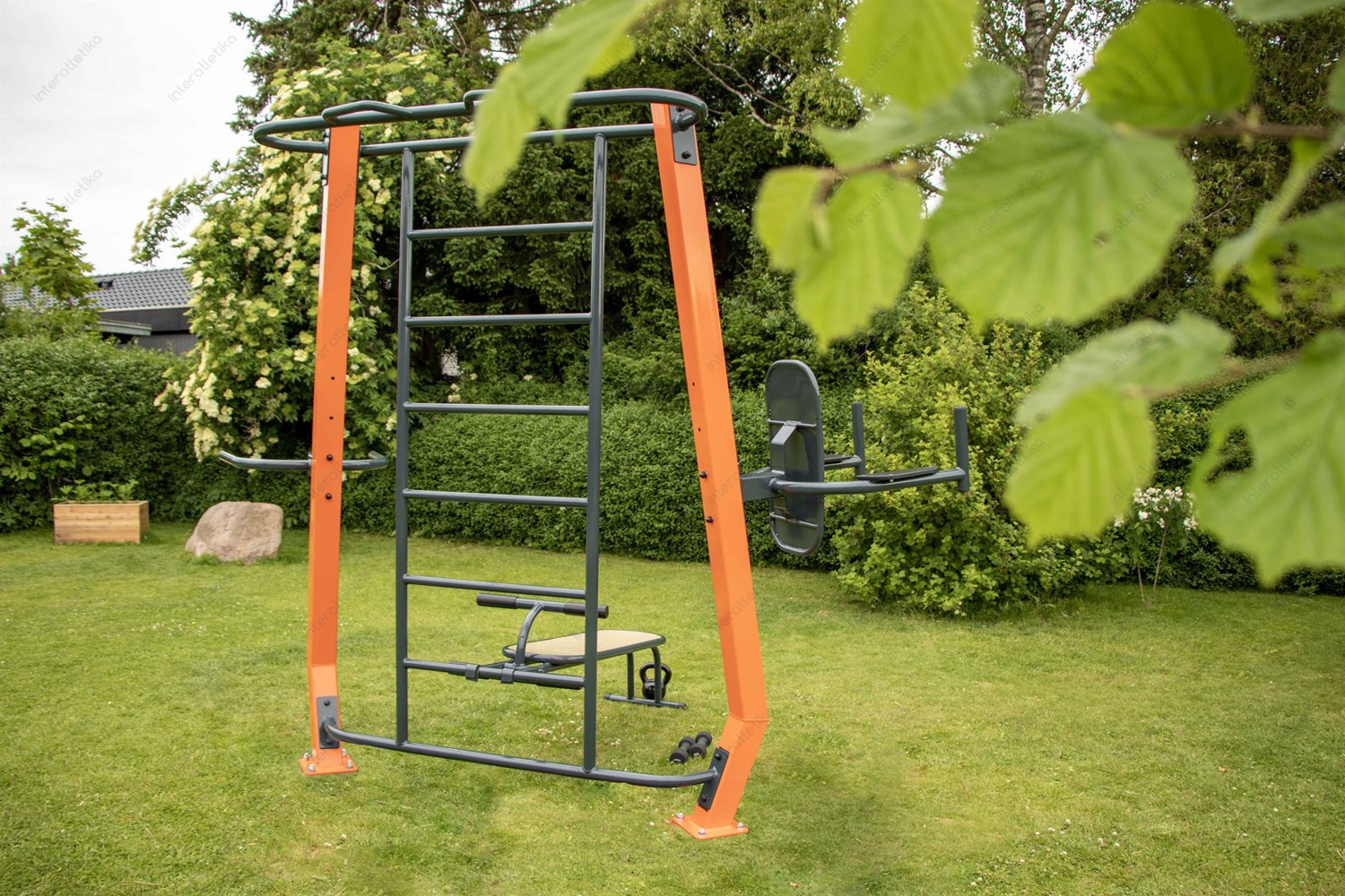 - SM800 Mini to kompaktowa stacja fitness do treningu całego ciała na świeżym powietrzu. Wyposażona w drabinkę, poręcze i uchwyt do brzuszków. Możliwość rozbudowy o ławkę i akcesoria.