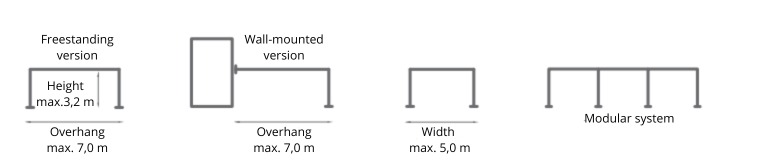 Az SB500 szabadon álló / falra szerelhető pergola legfontosabb előnyei: