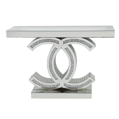 La consolle in vetro CHANTI unisce lucentezza a specchio, dettagli in cristallo e una forma scultorea. Le dimensioni 120×35×80 cm la rendono perfetta per la maggior parte degli ambienti – dal corridoio stretto al soggiorno rappresentativo.
