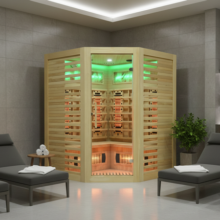 Gli infrarossi riscaldano delicatamente il corpo, supportando la rigenerazione dei muscoli e delle articolazioni, mentre i pannelli salini rilasciano minerali che purificano il corpo e migliorano la qualità dell'aria. Inoltre, la sauna è dotata di pannelli con pietre di tormalina, che emettono ioni negativi a sostegno della salute e del benessere.