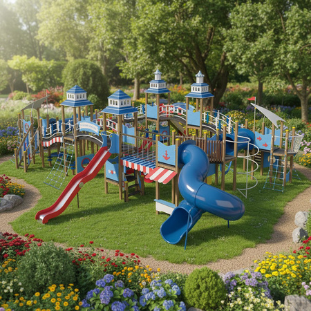 River Station T920 kviečia mažuosius tyrinėtojus į kelionių ir nuotykių pasaulį. Pasakiškas dizainas ir malonios spalvos traukia akį ir padeda tėvams lengvai motyvuoti juos žaisti lauke. Platus 9 bokštų išdėstymas sujungia įvairius perėjimus su 700-2700 mm aukščio rampomis ir nusileidimo kalneliais, todėl siūlo begalę žaidimų scenarijų.