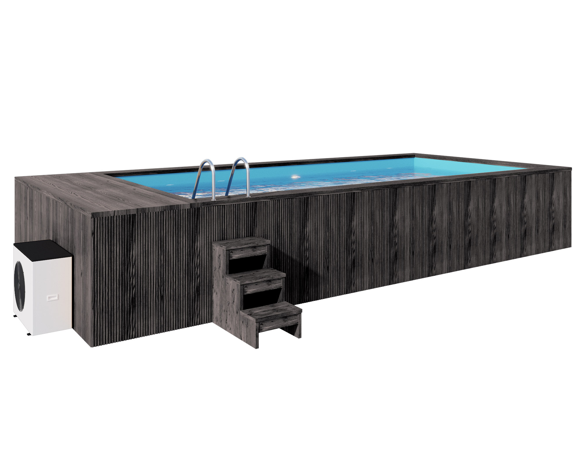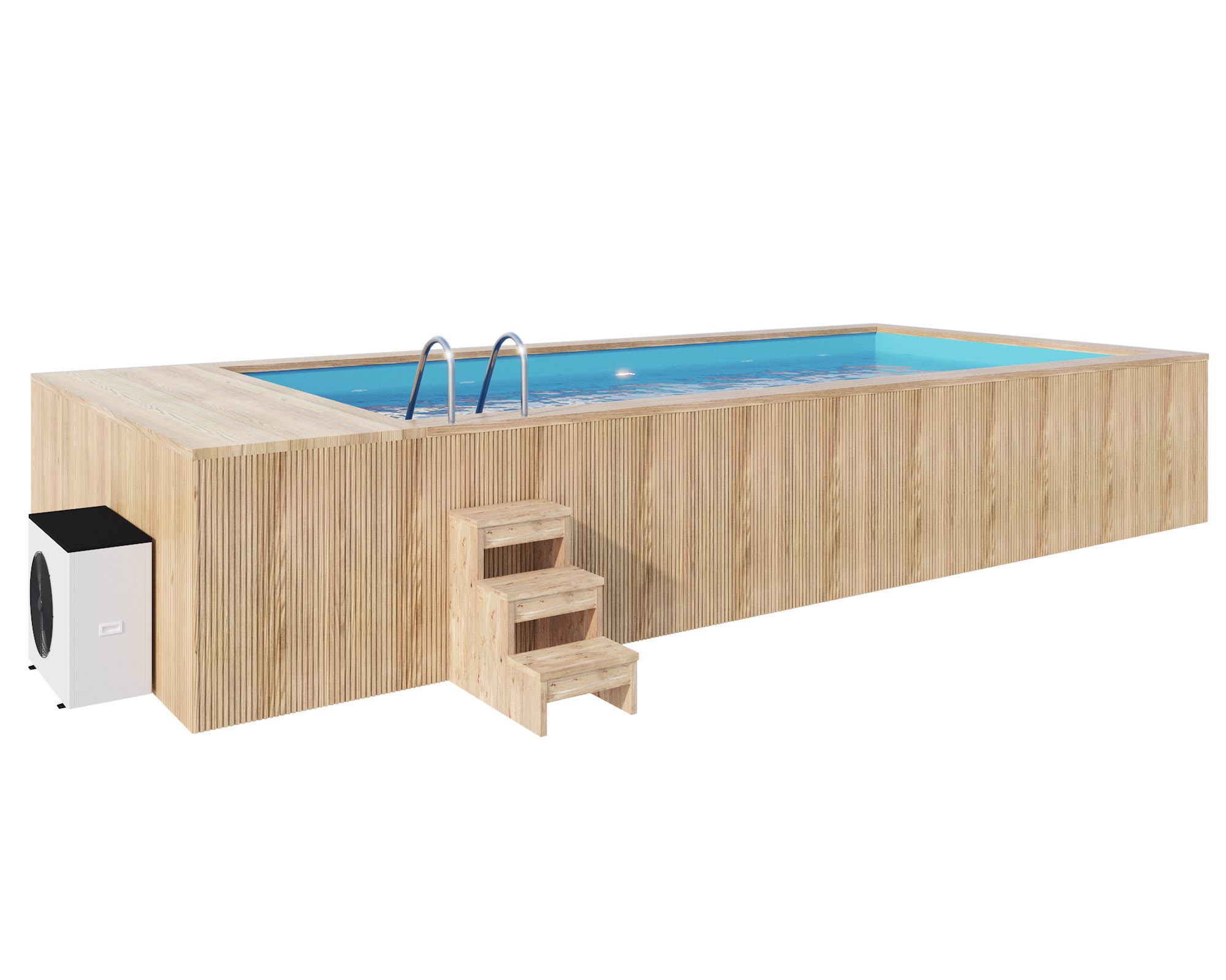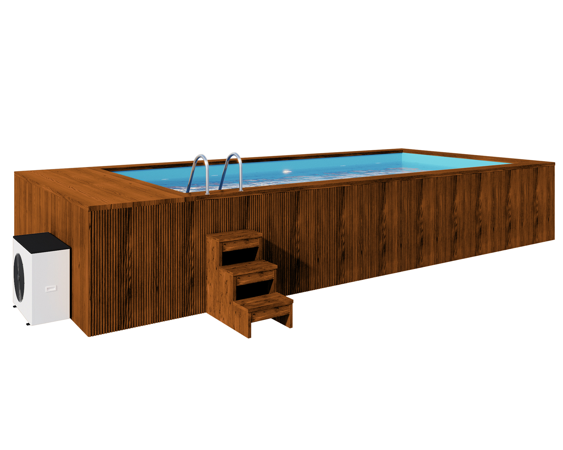 • Drewniane schody – wygodne i stylowe wejście do basenu