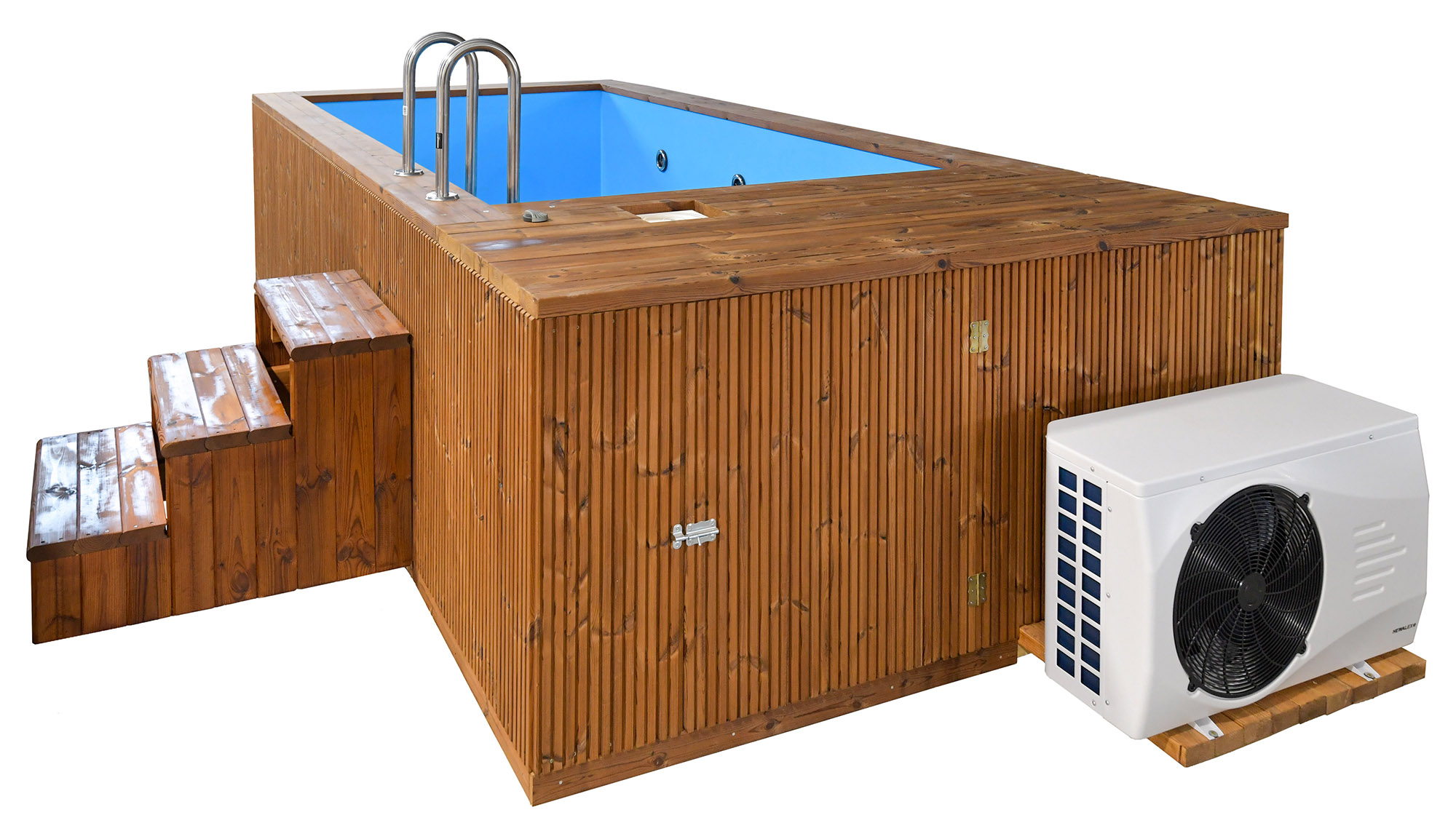 Dzięki wzmocnionej konstrukcji basen nie odkształca się pod wpływem wody, a komfort użytkowania podnoszą drewniane schodki i metalowa drabinka. Czystość wody zapewnia filtr piaskowy z dyszą przelewową, a idealną temperaturę utrzymuje pompa ciepła 9 kW.