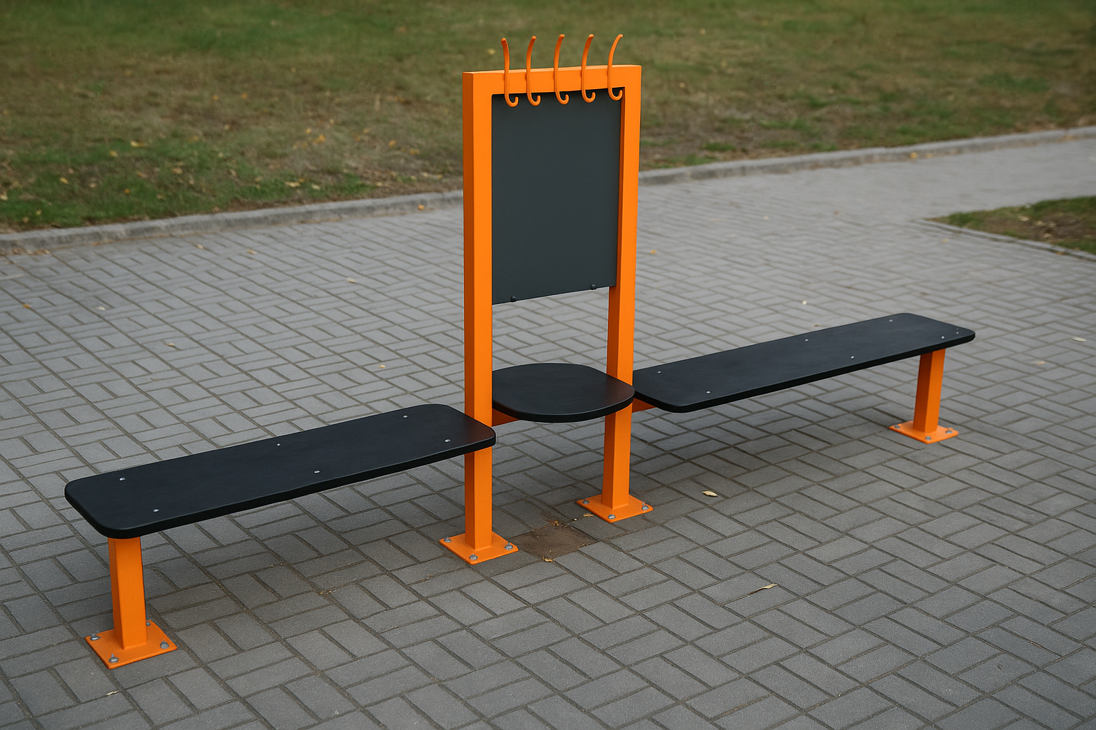De bank met standaard KF900.422 is een betrouwbaar sportelement ontworpen voor outdoorfaciliteiten en kleedkamers. Het toestel is ontwikkeld om het opbergen van persoonlijke spullen te vergemakkelijken, een plek te bieden om uit te rusten tussen trainingen door en tegelijk te dienen als prikbord en kapstok. Dankzij de multifunctionaliteit is dit een onmisbaar onderdeel van elk sportcomplex.