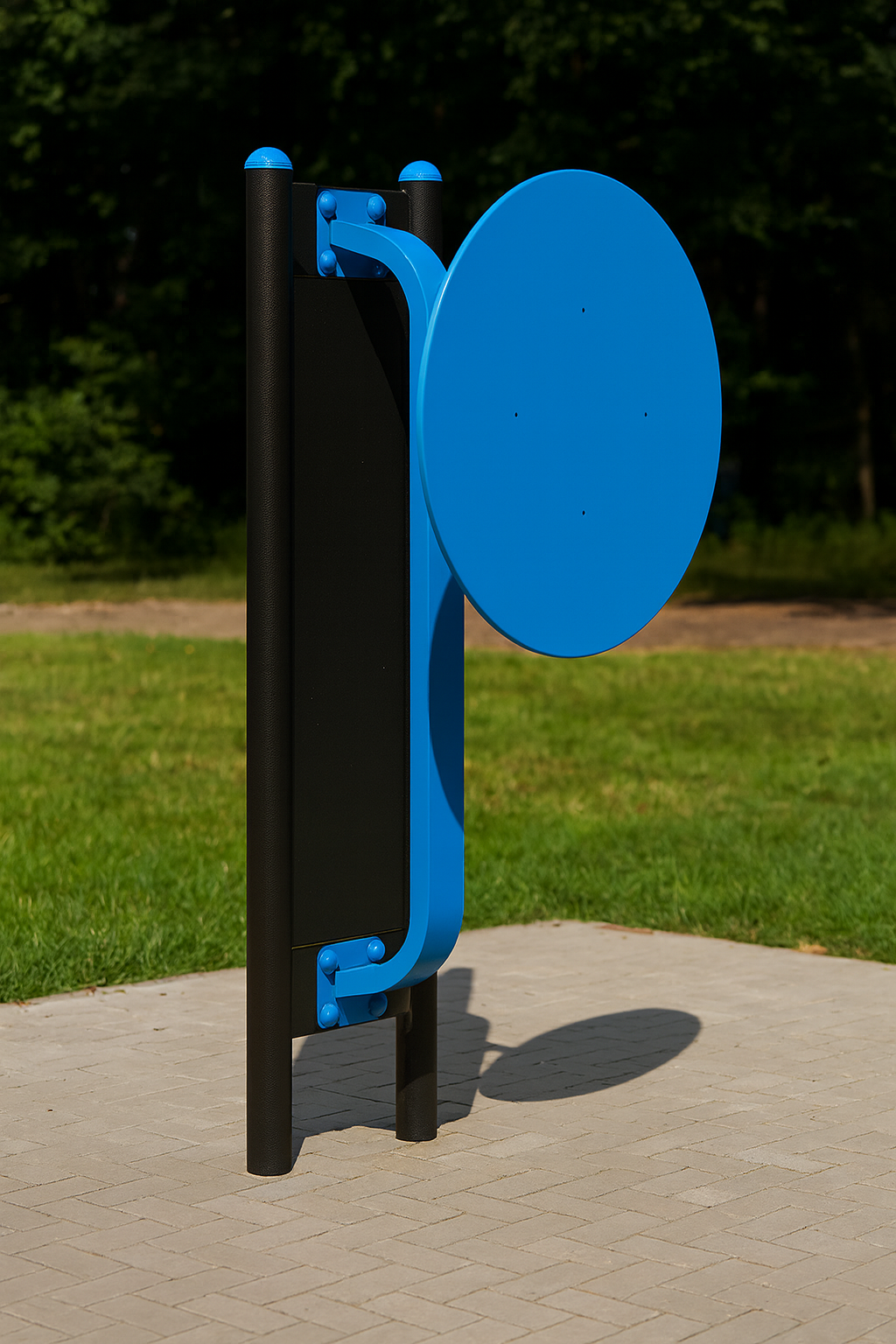 - Een stabiele metalen constructie met een poedercoating van polymeer zorgt voor weerbestendigheid en bescherming tegen vandalisme. Het toestel is veilig voor gebruikers met verschillende lichaamsgewichten en wordt aanbevolen voor mannen en vrouwen.