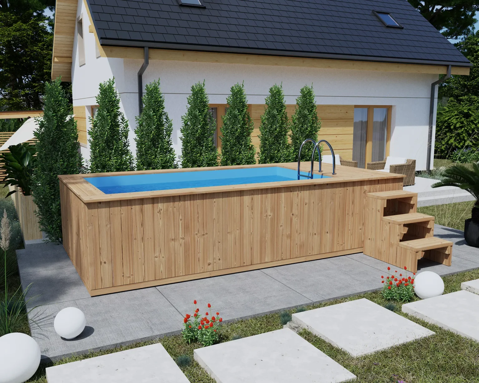 Basen Drewniany z wkładem polipropylenowym 480 × 240 cm (THERMO DREWNO) to ekskluzywna propozycja dla osób, które pragną stworzyć w swoim ogrodzie prywatną strefę relaksu i aktywności. To harmonijne połączenie funkcjonalności, naturalnej elegancji i trwałości, które podnosi prestiż przestrzeni oraz zapewnia wyjątkowe chwile wypoczynku i rekreacji w wodzie.