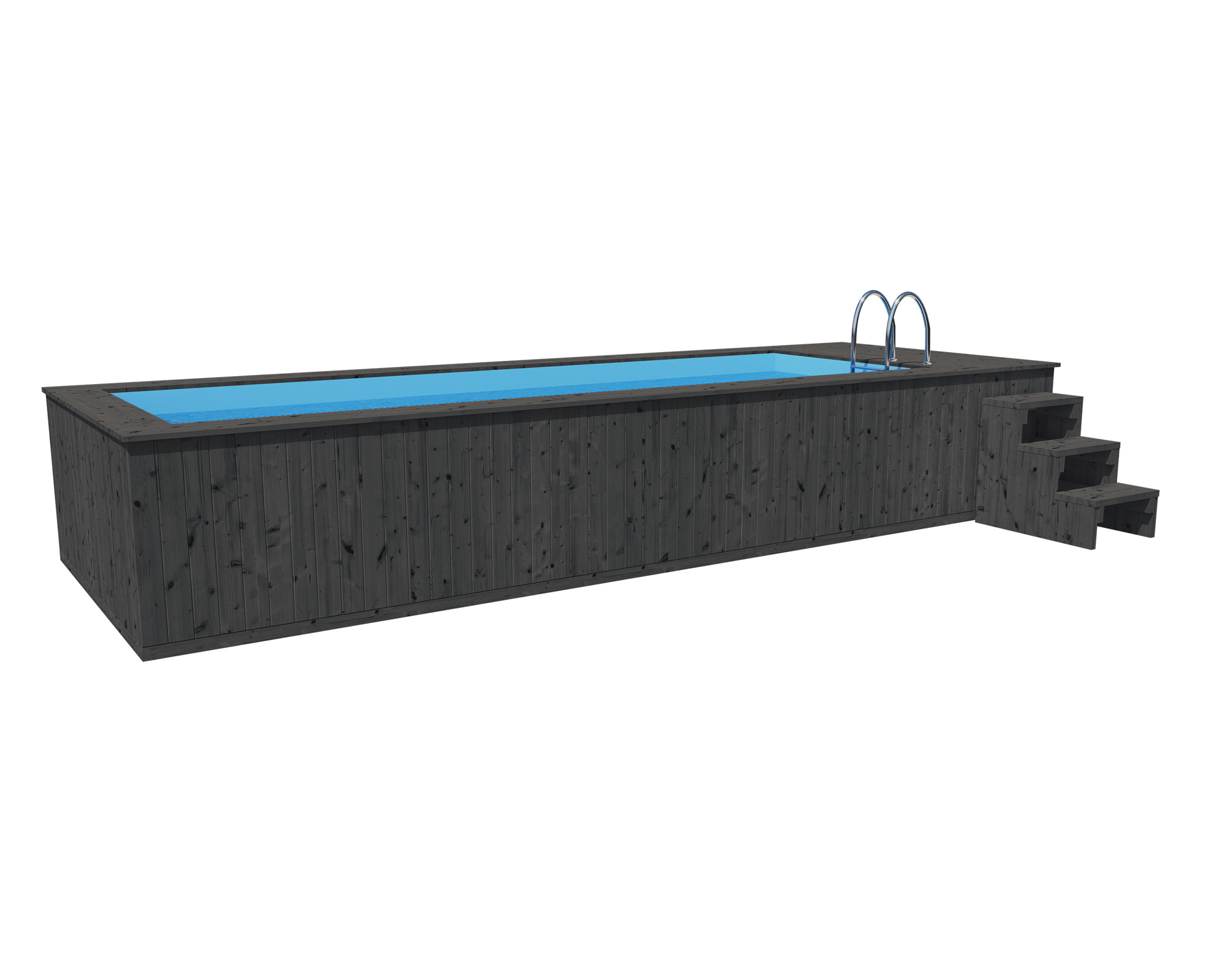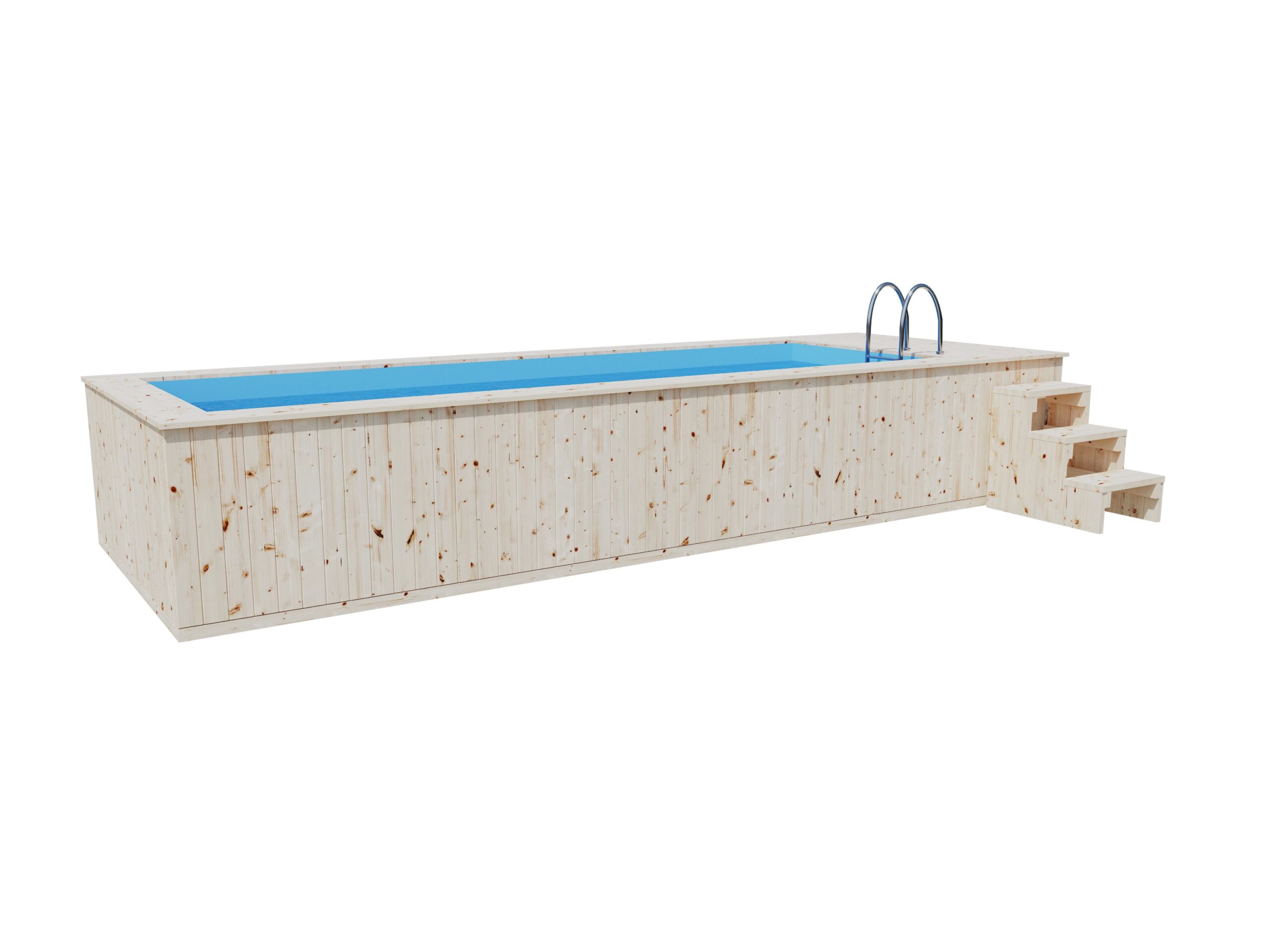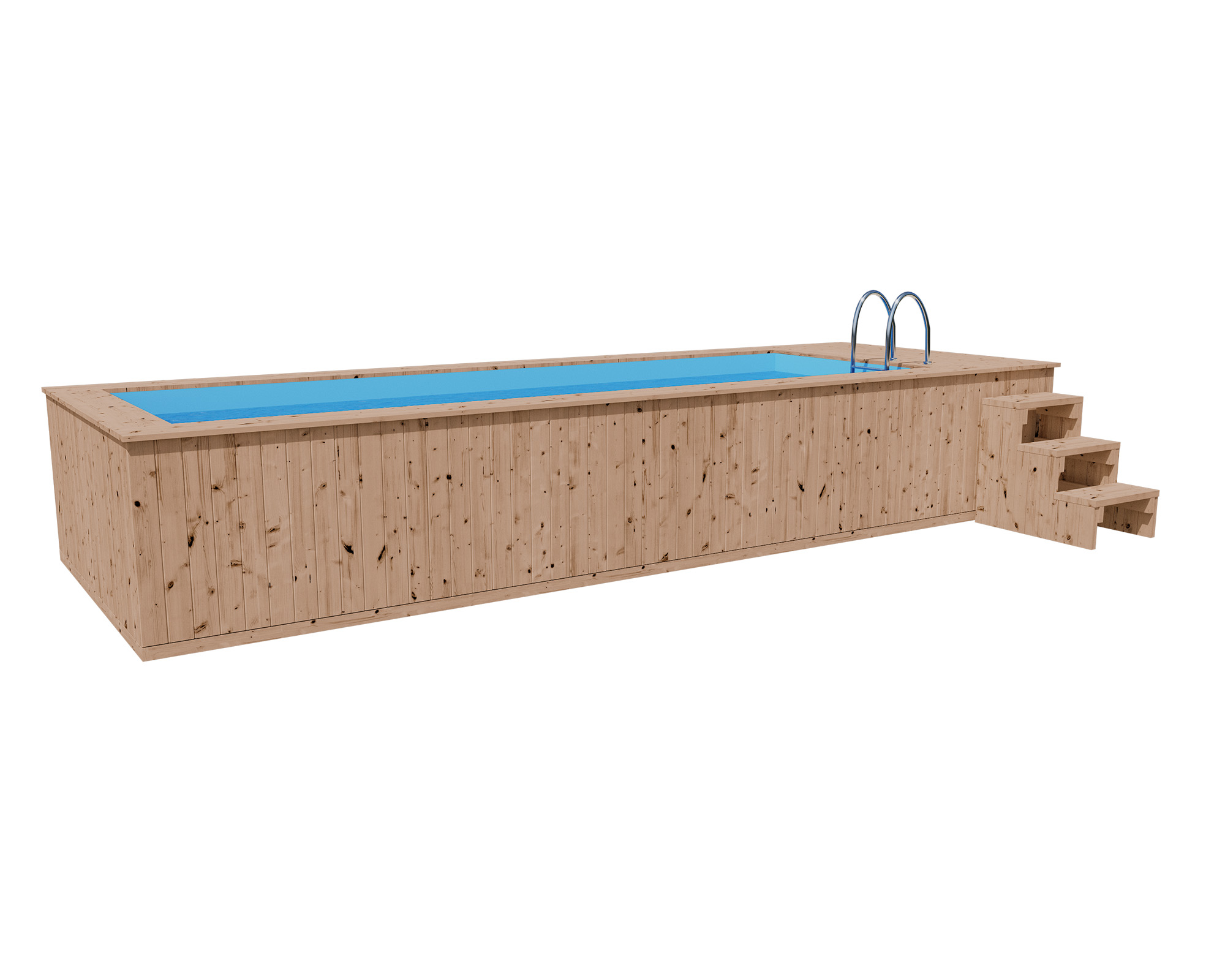 • Drewniane schody – wygodne i stylowe wejście do basenu
