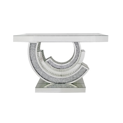 Consola de vidro 120×80×35 cm – espelhada, transparente, decorada com cristais