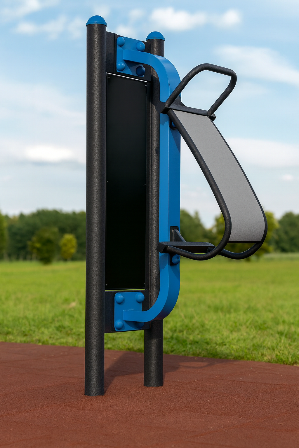 O treino regular na estação reforça os abdominais, apoia a estabilidade do tronco e pode promover o bem-estar. A estrutura metálica robusta com pintura a pó garante resistência às intempéries e proteção contra vandalismo. O equipamento é seguro para utilizadores com diferentes pesos corporais e é recomendado para mulheres e homens entre 14–70 anos.