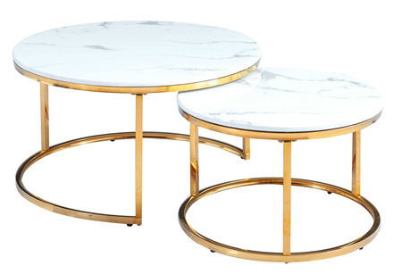 Letar du efter möbler som kombinerar modern design med tidlös klass? DUO soffbordset är den perfekta lösningen för dig som värdesätter lyx, hållbarhet och praktisk användning. Tack vare kombinationen av polerat rostfritt stål i guldton och vit marmor kommer dessa bord att ge din inredning en unik stil och glans.