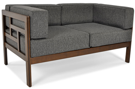 Modern 2-sits trädgårdssoffa i minimalistisk skandinavisk stil kombinerar naturmaterial med den klassiska formen av en fåtölj.