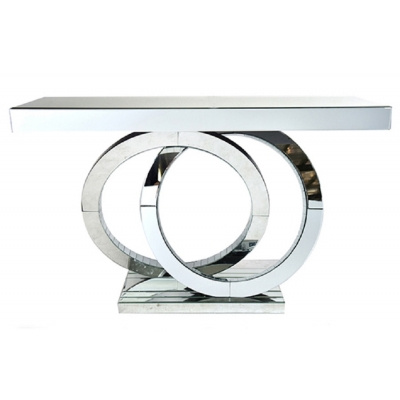 Glaskonsolen med dubbelring kombinerar innovativ form, förstklassiga material och speglande finish och ger varje interiör en exklusiv prägel.