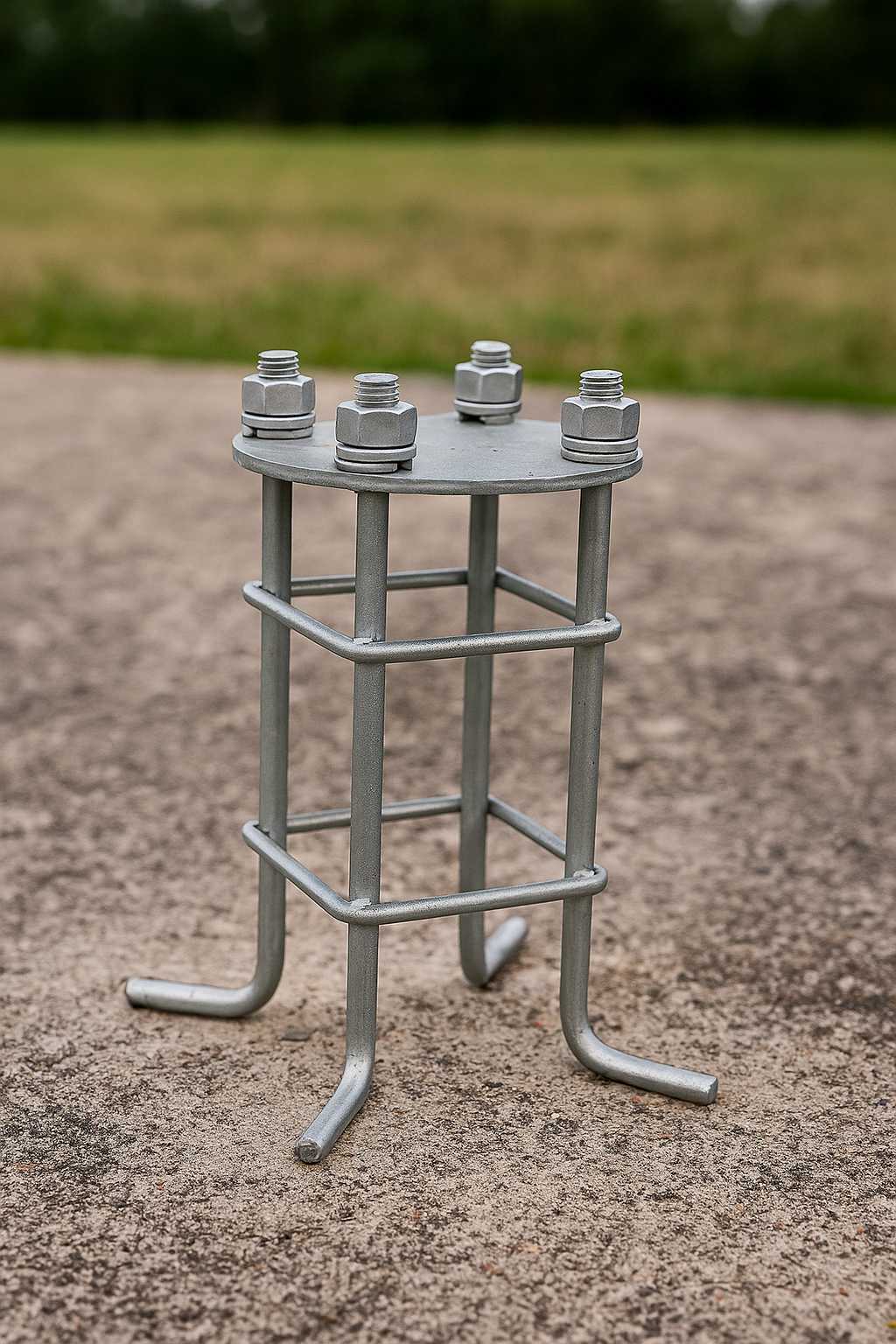 De fyra starka ankarna säkerställer en hållbar infästning i betongen och eliminerar risken för att konstruktionen förskjuts eller välter. Tillverkat av högkvalitativt stål som är motståndskraftigt mot korrosion och slitage, är fundamentet SL000 en pålitlig lösning för professionella idrottsområden och utomhusgym.